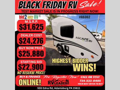 Stock #A6362Adamsburg, PAThis RV has been entered into our RVL "BID 2 BUY" program - CALL TO PLACE YOUR BID TODAYStock #A6362Adamsburg, PAThis RV has been entered into our RVL "BID 2 BUY" program - CALL TO PLACE YOUR BID TODAY
