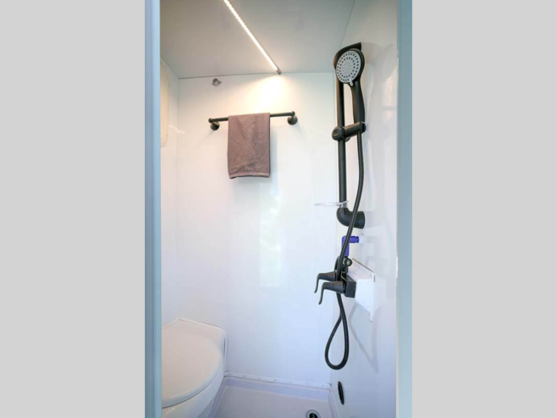 The independent off-road suspension, off-road tires, and articulating off-road hitch are what make the Enduro so easy to tow, and you can add the optional bike racks if you plan to hit the trails. A wet bath comes standard that includes a shower and cassette toilet, and you will love the modern and functional interior. Off-grid camping is possible with the 1500W inverter and 200W solar panel included, and you can choose an optional second solar panel for even more power.