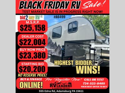 RV Leaders & Camping Outlet works hard to ensure the accuracy of our RV unit listings and website pages. Content (this includes prices) for RV unit listings and website pages can change without notice. Manufacturer specifications, features, equipment, technical data, photos (stock photos as well) and illustrations may be used in place of our RV unit listings and website pages. Manufacturer specifications, features, equipment, technical data, photos (stock photos as well) and illustrations are based on information available at the time of publishing. We are not responsible for any misprints, typos or errors found on our RV unit listings and website pages.