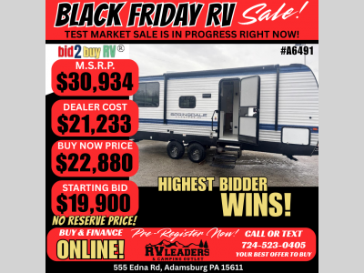Stock #A6491Adamsburg, PAThis RV has been entered into our RVL "BID 2 BUY" program - CALL TO PLACE YOUR BID TODAYStock #A6491Adamsburg, PAThis RV has been entered into our RVL "BID 2 BUY" program - CALL TO PLACE YOUR BID TODAY