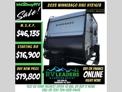 Stock #A6530AAdamsburg, PAThis RV has been entered into our RVL "BID 2 BUY" program - CALL TO PLACE YOUR BID TODAYStock #A6530AAdamsburg, PAThis RV has been entered into our RVL "BID 2 BUY" program - CALL TO PLACE YOUR BID TODAY