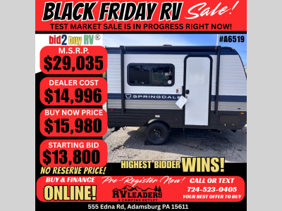 Stock #A6519Adamsburg, PAThis RV has been entered into our RVL "BID 2 BUY" program - CALL TO PLACE YOUR BID TODAYStock #A6519Adamsburg, PAThis RV has been entered into our RVL "BID 2 BUY" program - CALL TO PLACE YOUR BID TODAY