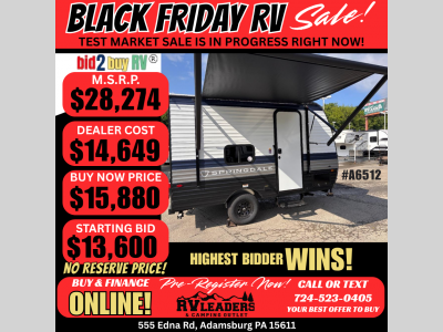 Stock #A6512Adamsburg, PAThis RV has been entered into our RVL "BID 2 BUY" program - CALL TO PLACE YOUR BID TODAYStock #A6512Adamsburg, PAThis RV has been entered into our RVL "BID 2 BUY" program - CALL TO PLACE YOUR BID TODAY