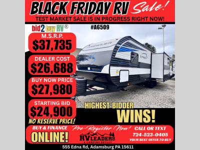 Stock #A6509Adamsburg, PAThis RV has been entered into our RVL "BID 2 BUY" program - CALL TO PLACE YOUR BID TODAYStock #A6509Adamsburg, PAThis RV has been entered into our RVL "BID 2 BUY" program - CALL TO PLACE YOUR BID TODAY