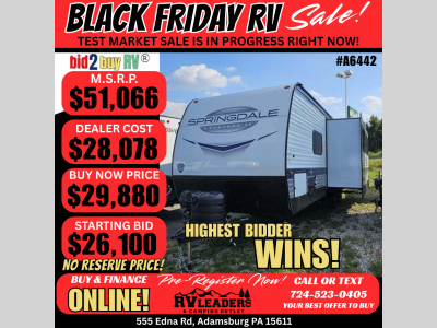 Stock #A6442Adamsburg, PAThis RV has been entered into our RVL "BID 2 BUY" program - CALL TO PLACE YOUR BID TODAYStock #A6442Adamsburg, PAThis RV has been entered into our RVL "BID 2 BUY" program - CALL TO PLACE YOUR BID TODAY